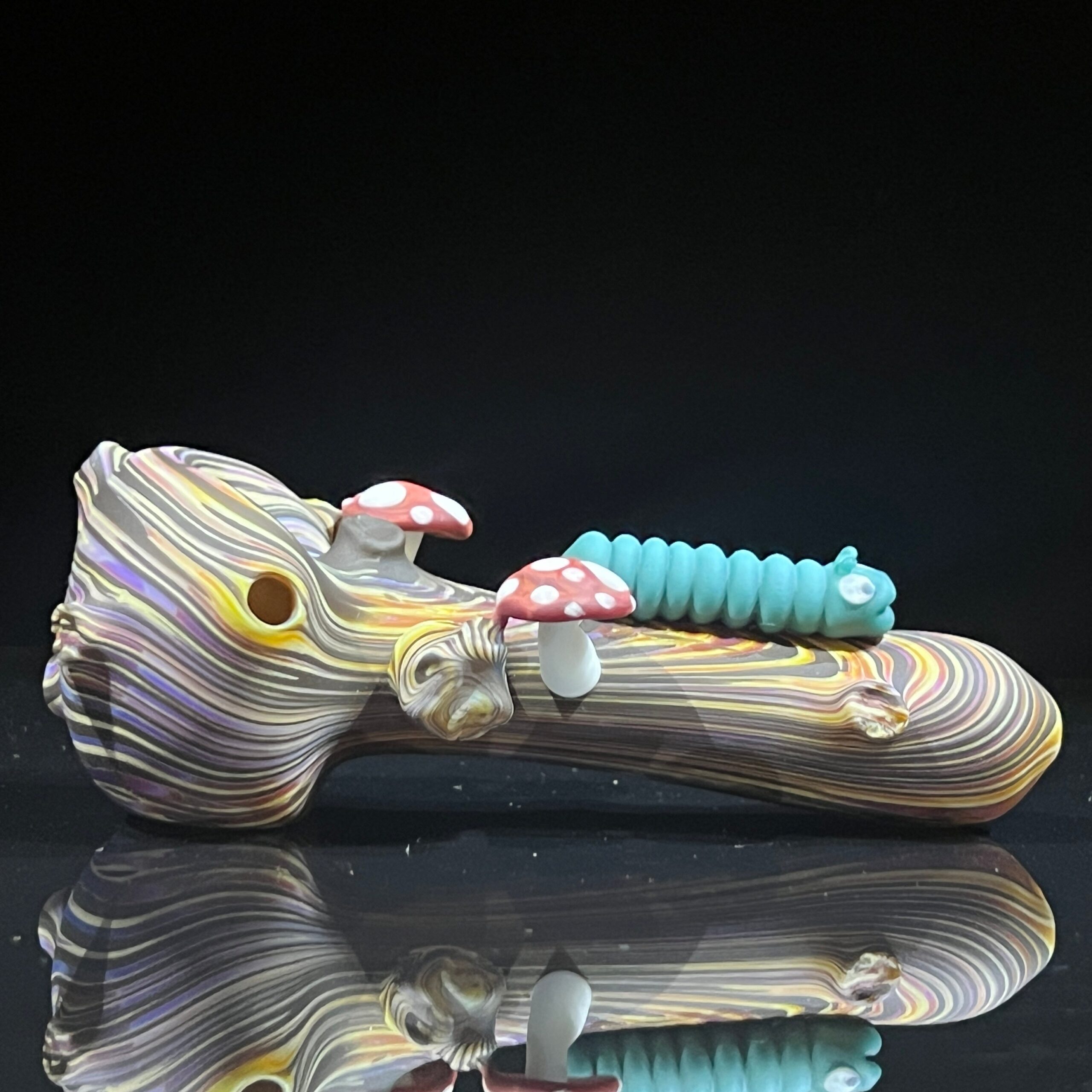 The Wood Grain Caterpillar Shroom Branch Pipe boasts a captivating design inspired by nature’s artistry. Let’s explore its remarkable features:
