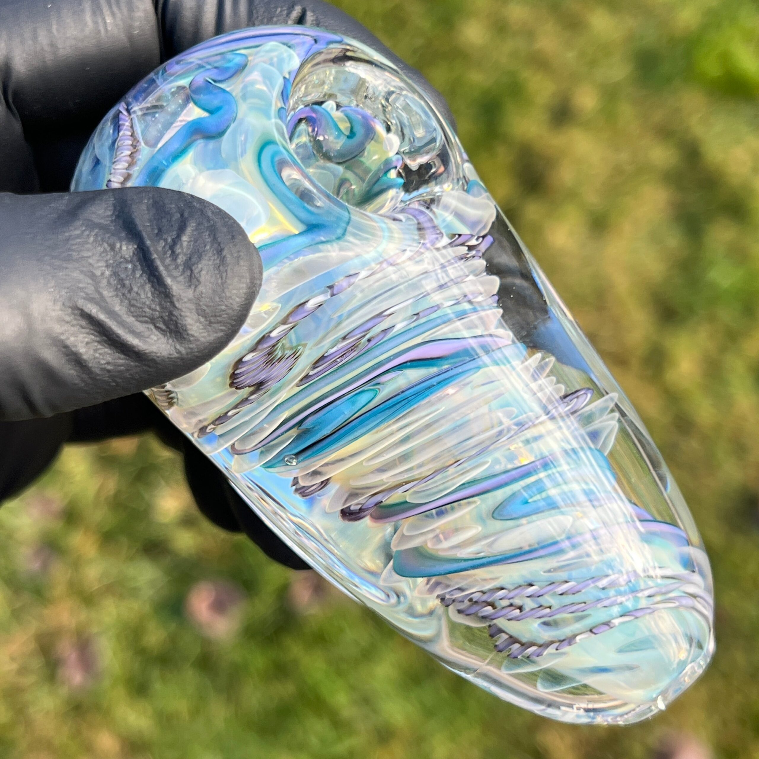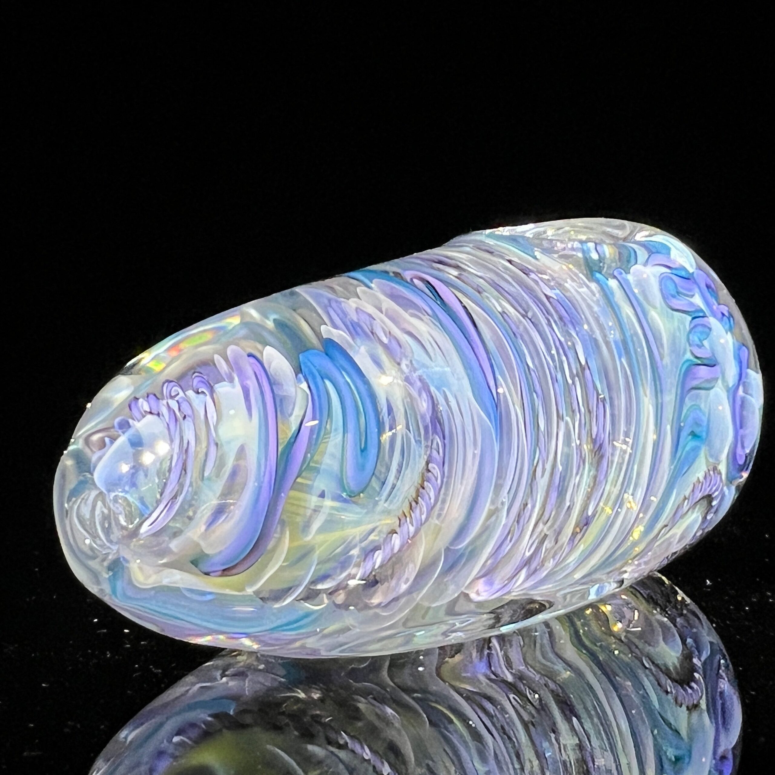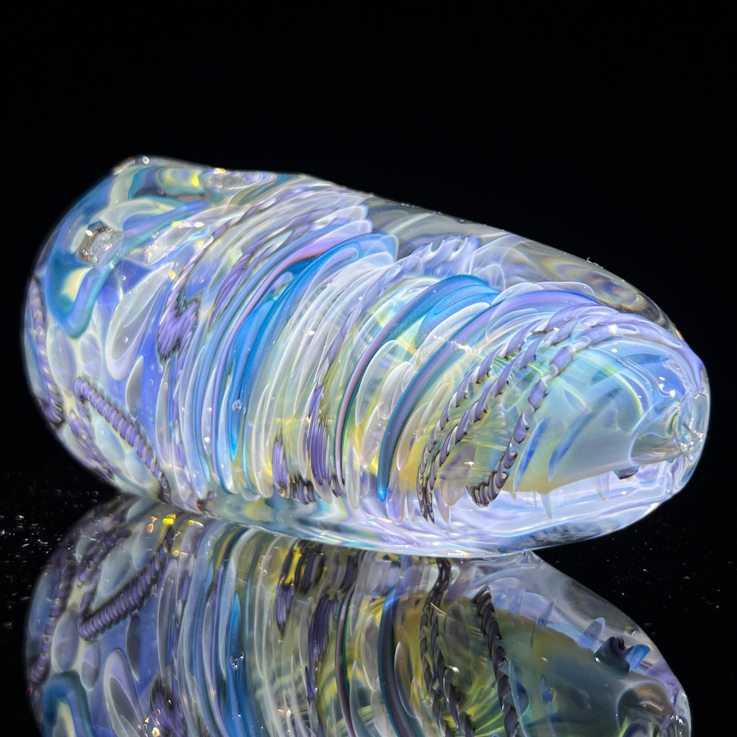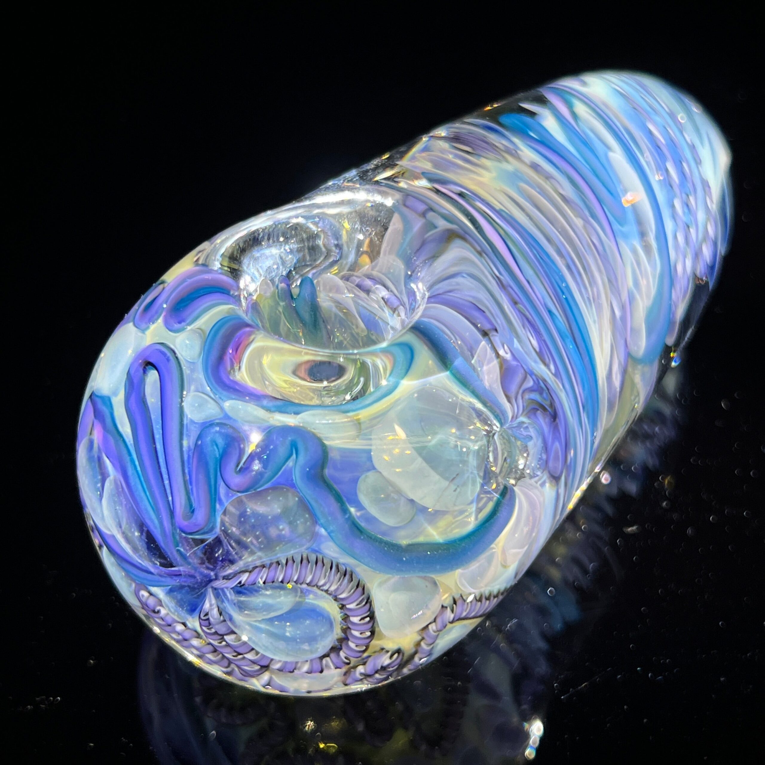 • Inside-Out Cane Work/Latticinios & Stringers: The vibrant, swirling colors aren’t just for show. This intricate design, featuring twisted canes containing multiple colors (latticinios), creates a visually stunning and mesmerizing effect, enhancing the overall vaping experience. The unique pattern also contributes to the spoon’s exceptional durability.