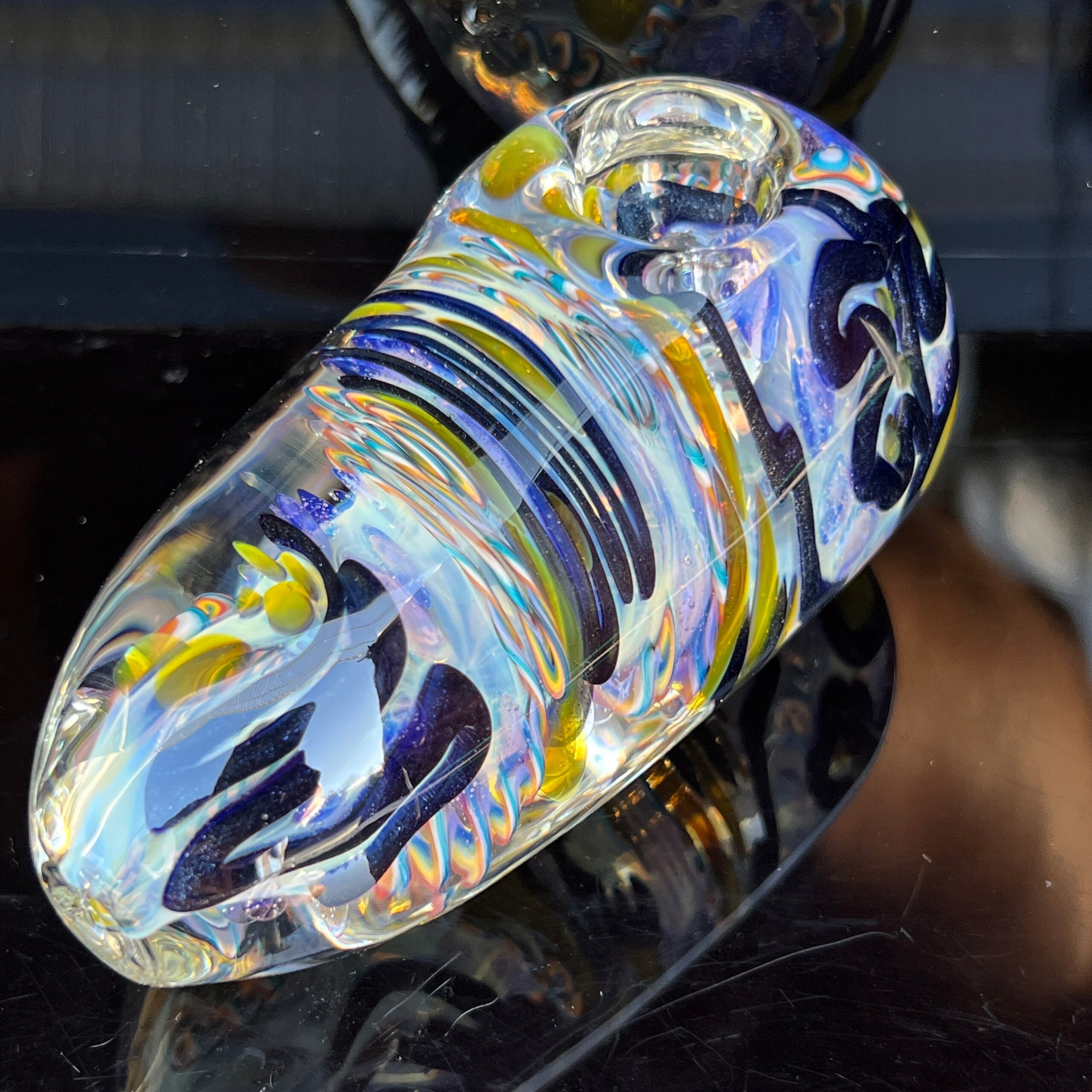 - Color-Changing Glass: Experience a mesmerizing shift in color as you use the spoon, adding another dimension to your vaping experience. The color-changing effect is enhanced by the light refraction through the intricate glass design.